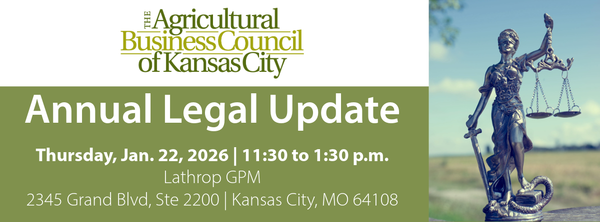 The Agricultural Business Council of Kansas City will kick off 2026 with its Annual Legal Update on Thursday, January 22, 2026, at Lathrop GPM in Kansas City.