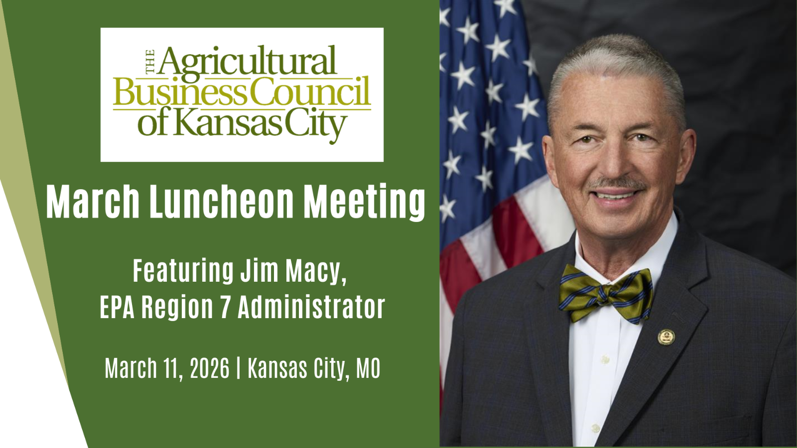Join us for the Council’s March Luncheon Meeting at Grand Street Café. We are pleased to welcome Jim Macy, Regional Administrator for EPA Region 7, which serves Iowa, Kansas, Missouri, Nebraska, and nine tribal nations.